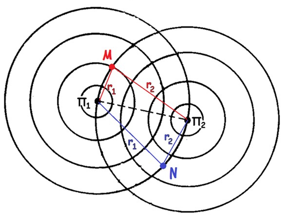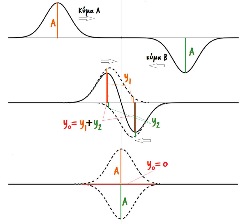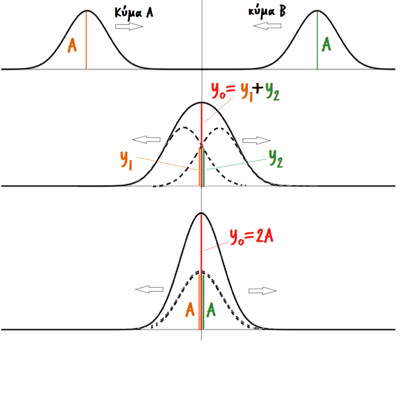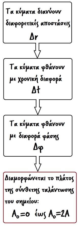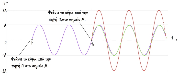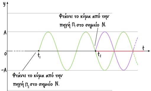 Ας υποθέσουμε ότι σε δυο σημεία της επιφάνειας μιας ήρεμης υδάτινηςμάζας, δημιουργούμε δυο πηγές επιφανειακών κυμάτων.
