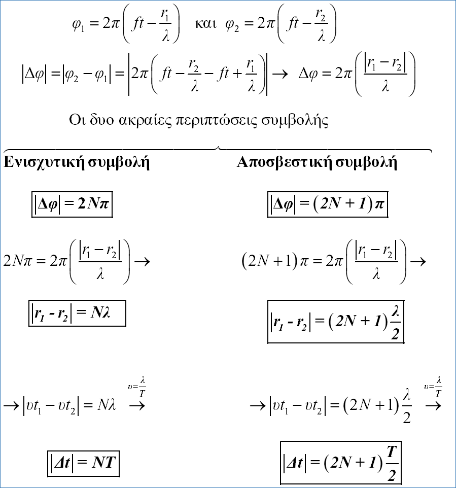 Σημείωση: Πολλές φορές οι πηγές αναφέρονται ως σύμφωνες. Στα πλαίσια της ύλης οι σύγχρονες και οι σύμφωνες πηγέςθεωρούνται το ίδιο. Όμως σύμφωνες είναι οι πηγές που έχουν μεν ίδια συχνότητα αλλά έχουν και σταθερήδιαφορά φάσης μεταξύ τους. Για παράδειγμα, η μια πηγή να ξεκινά προς τα πάνω και η άλλη προς τα κάτω.Έχουν τότε σταθερή διαφορά φάσης π.Σημείωση: Πολλές φορές οι πηγές αναφέρονται ως σύμφωνες. Στα πλαίσια της ύλης οι σύγχρονες και οι σύμφωνες πηγέςθεωρούνται το ίδιο. Όμως σύμφωνες είναι οι πηγές που έχουν μεν ίδια συχνότητα αλλά έχουν και σταθερήδιαφορά φάσης μεταξύ τους. Για παράδειγμα, η μια πηγή να ξεκινά προς τα πάνω και η άλλη προς τα κάτω.Έχουν τότε σταθερή διαφορά φάσης π.