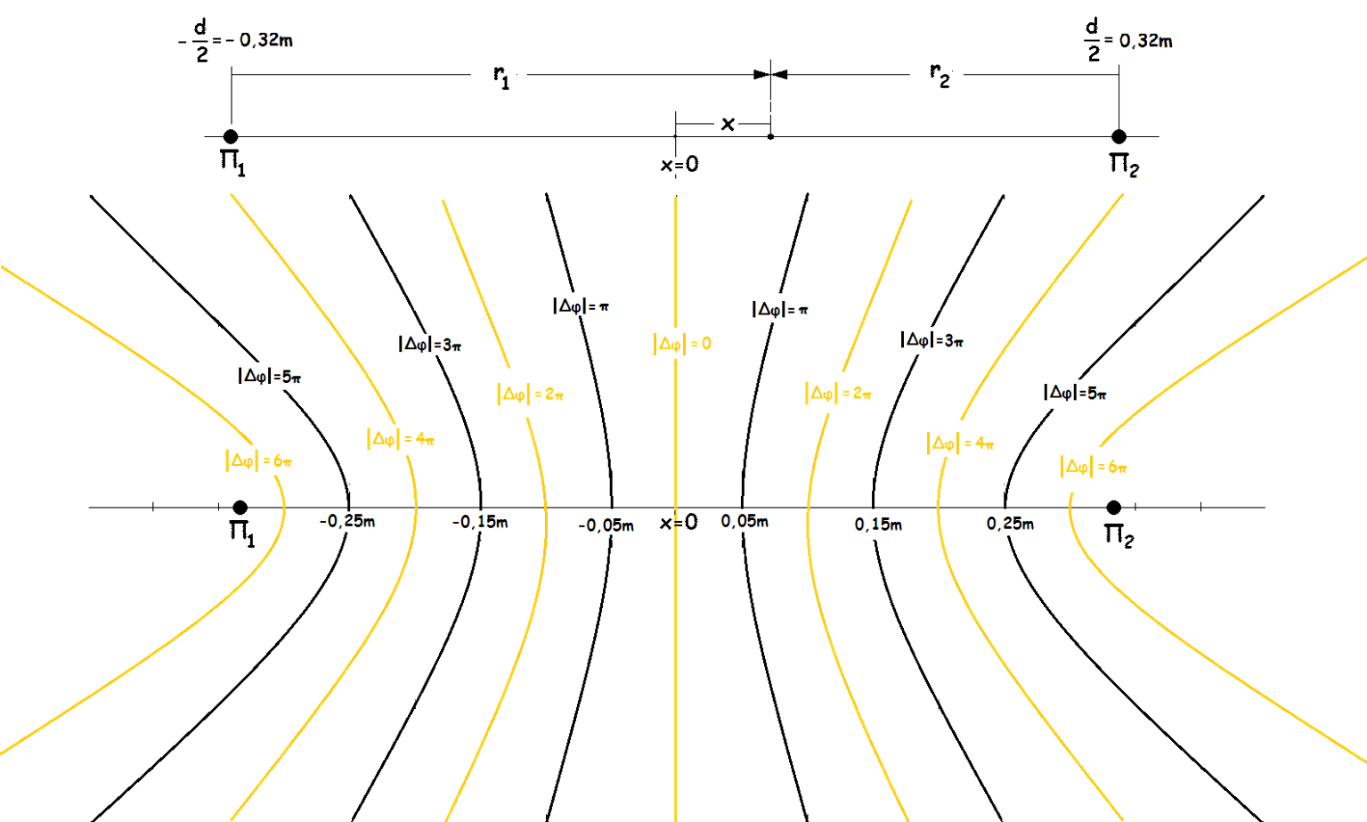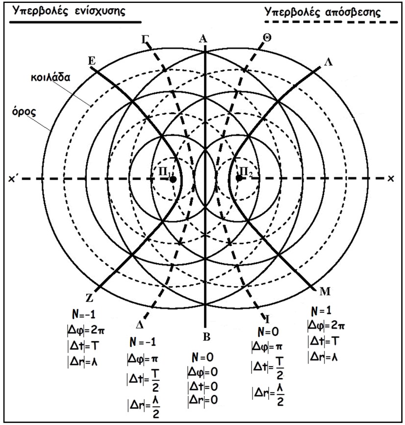 Οι πηγές έχουν την ίδια φάση δηλαδή ταλαντώνονται με πανομοιότυπο τρόπο.